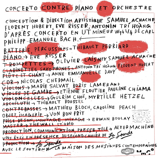 Ce concerto débute comme un concert classique, avec un petit orchestre d’instruments anciens et une pianiste qui interprètent le concerto 43/4 de Carl Philipp Emanuel Bach. Rapidement ces élans préclassiques glissent vers une digression musicale imaginée par Samuel Achache, Florent Hubert, Antonin Tri Hoang et Eve Risser qui se détache de l’écriture de CPE Bach pour venir explorer le rapport entre une soliste et un orchestre, entre un individu et le groupe. Deux entités indépendantes mais indispensables l’une à l’autre.